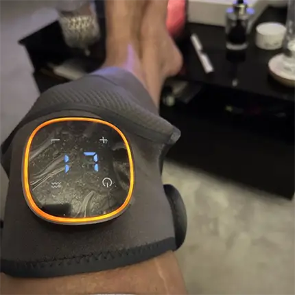 When you put it on, the device will start applying red light therapy, heat therapy, and massage therapy to your knees. This combination therapyaddresses the root cause of knee pain.